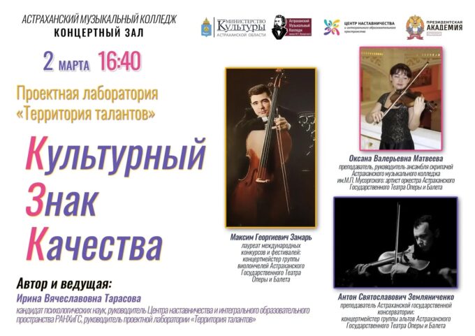 2 марта нас всех ждет встреча с Антоном Земляниченко (альт), Оксаной Матвеевой (скрипка), и Максимом Замарь (виолончель). Студенты получат ответы на вопросы, которые касаются профессии музыканта, узнают о творческом пути каждого из участников встречи, и конечно же, соприкоснутся с музыкальными произведениями в исполнении наших гостей.